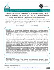Chamani Cheragh Tepe R, Jahangiri K, Abbasi Dolatabadi Z. Survey of Farsi Hospital Safety Index in Teaching Hospitals of Tehran University of Medical Sciences in a Four- Year Period from 2018 to 2021. Irtiqa Imini Pishgiri Masdumiyat. 2023;11(1):25-39. Doi: 10.22037/iipm.v11i1.41386