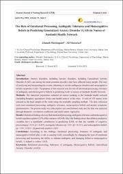 نقش پردازش هیجان، تحمل ابهام و باورهای فراشناختی در پیشبینی اختلال اضطراب فراگیر پرستاران شبکه بهداشت سردشت