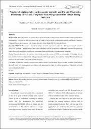 Background & Aims: Air pollution has adverse effects on human health and cause various diseases including cardiovascular disease and respiratory. Therefore this study with aim of study of Number of total mortality, cardiovascular mortality and Chronic Obstructive Pulmonary Disease due to exposure with Nitrogen dioxide in Tehran during 2005-2014 were performed.