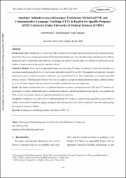 Students' Attitudes toward Grammar Translation Method (GTM) and Communicative Language Teaching (CLT) in English for Specific Purposes (ESP) Courses in Urmia University of Medical Sciences (UMSU)