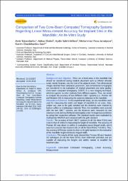 بررسی مقایسهای دو سیستم Cone Beam CT به لحاظ دقت اندازهگیری خطی محلهای قراردهی ایمپلنت در مندیبل بهصورت In Vitro