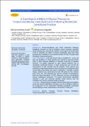 گزارش موردی از تأثیر فیزیوتراپی بر اختلالات مفصل گیجگاهی فکی به دنبال شکستگی سمفیزیس استخوان مندیبل