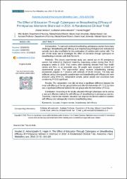 نتیجه گیری: آموزش از طریق فضای مجازی میتواند به عنوان یک روش جدید و مؤثر در خودکارآمدی شیردهی زنان نخستزا استفاده شود. بنابراین، به نظر میرسد بتوان با آموزش مادران، عوامل مرتبط با خودکارآمدی شیردهی را اصلاح کرد و وضعیت شیردهی را بهبود بخشید.