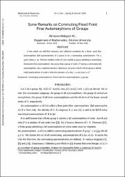 Some Remarks on Commuting Fixed Point Free Automorphisms of Groups