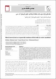 در این تحقیق انتقال حرارت جابهجایی ترکیبی نانوسیال آب- مس در یک محفظه ذوزنقهای با منابع حرارتی روی دیوارههای جانبی آن به صورت عددی بررسی شده است. منابع حرارتی روی دیوارههای قائم در دماهای Th و Tc واقع شده¬اند و دیوارههای افقی عایق میباشند. جریان جابهجایی اجباری توسط عبور سیال از آن و جابهجایی طبیعی با قرار دادن دیواره چپ در دمایی بالاتر از دیواره راست ایجاد می¬شود. برای بررسی اثر مکان دریچه ورودی و خروجی، دو حالت بررسی شده است. مقایسه بین نتایج نشان میدهد که نرخ انتقال حرارت در حالتی که ورودی به دیواره سرد نزدیکتر است بیشتر از حالتی است که دیواره گرم نزدیکتر میباشد. نتایج برای مقادیر مختلف کسر حجمی نانوذرات، عدد ریچاردسون و عدد رینولدز ارائه شدهاند. بر¬اساس نتایج مشاهده شد که به ازای اعداد رینولدز و ریچاردسون مورد بررسی، در یک عدد رینولدز و کسر حجمی مشخص با افزایش عدد ریچاردسون، عدد ناسلت افزایش مییابد و هم چنین در یک ریچاردسون و کسر حجمی مشخص افزایش عدد رینولدز باعث افزایش عدد ناسلت میشود. برای عدد ریچاردسون و رینولدز بالاتر، نانوسیال بر افزایش عملکرد انتقال گرما تأثیر بیشتری دارد.