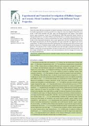 بررسی تجربی و عددی ضربه بالستیک پرتابههایی با دماغه متفاوت در اهداف ترکیبی سرامیک- فلز