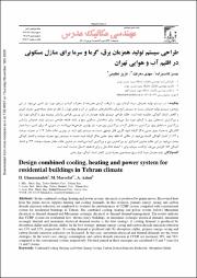 طراحی سیستم تولید همزمان برق، گرما و سرما برای منازل مسکونی در اقلیم آب و هوایی تهران