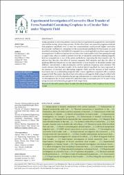 بررسی تجربی انتقال حرارت جابجایی اجباری نانوسیال فریک گرافنی در یک لوله دایروی تحت میدان مغناطیسی