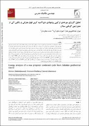 استفاده از انرژیهای نو از جمله انرژی زمین گرمایی به سرعت در جهان در حال گسترش میباشد، منطقه سبلان در ایران پتانسیل بسیار خوبی برای تولید توان از منابع انرژی زمین گرمایی را دارا میباشد. در این مقاله یک چرخهی ترکیبی تولید توان جدید (چرخه ترکیبی تبخیر آنی با چرخه دیاکسید کربن فوق بحرانی و رانکین آلی) با توجه به دو چاه با دما و فشار متفاوت برای منابع زمین گرمایی سبلان پیشنهاد شده است. برای چرخه رانکین آلی چهار سیال عامل مناسب در نظر گرفته شده و سپس چرخه ترکیبی پیشنهادی مورد تحلیل انرژی و اگزرژی قرار میگیرد. در این مطالعه برای مبدلهای چرخهی دیاکسید کربن یک روش برای پیدا کردن محل نقطه تنگش پیشنهاد شده و در انتها چرخه پیشنهادی نسبت به فشار جداسازها، دمای اواپراتور دوم و نسبت فشار چرخه دیاکسیدکربن مورد بهینهسازی قرار گرفته است. نتایج نشان میدهد که سیال ان-بوتان مناسبترین سیال برای چرخه رانکین میباشد، که در حالت بهینه برای چرخه پیشنهادی توان خالص 19934 کیلووات، بازده انرژی %17.05 و بازده اگزرژی %65.38 محاسبه شده است. طبق نتایج تحلیل اگزرژی توربین فشار پایین زمین گرمایی دارای بیشترین تخریب اگزرژی میباشد. نتایج نشان میدهد که برای چرخهی پیشنهادی در این مقاله توان خالص تولیدی %15.29، بازده حرارتی %17.06 و بازده اگزرژی %18.35 نسبت به مطالعات قبلی بهبود یافته اند.