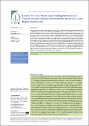 تأثیر پارامترهای جوشکاری لیزر تپی ND: YAG بر تحولات ریزساختاری و خواص مکانیکی فولاد زنگنزن دوفازی 2205