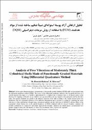 تحلیل ارتعاش آزاد پوستهnot;ی استوانهnot;ای نسبتاً ضخیم ساخته شده از مواد هدفمند (FGM) با استفاده از روش مربعات دیفرانسیلی (DQM)