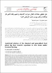 حل تحلیلی معادلات انتقال حرارت کلاسیک و تعمیم یافته تأخیر فاز دوگانه در بافت پوست تحت گرمایش گذرا