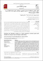 در این پژوهش، به بررسی تحلیل ارتعاشات آزاد و کمانش پنل ساندویچی استوانهای ضخیم با هسته انعطافپذیر با شرایط مرزی ساده با استفاده از تئوری مرتبه بالای بهبود یافته پرداخته شده است. بارگذاری تک محوره فشاری روی لبههای بالا و پایینی در دو سوی پنل به صورت همزمان و یکنواخت اعمال شده است. میدان جابجایی در این پژوهش برای رویههای ضخیم بصورت چند جملهای درجه سه و برای هسته انعطاف پذیر با استفاده از مدل دوم فروستیگ نوشته شده است. در این مدل 27 درجه آزادی وجود دارد. در تئوری حاضر تنش نرمال عرضی در رویهها و تنشهای درونصفحهای در هسته در نظر گرفته شده است. برای بدست آوردن پاسخ دقیق با توجه به اینکه رویه ها ضخیم در نظر گرفته شدهاند از هیچکدام از مولفه های تنش در رویه ها و هسته صرفنظر نگردیده است. معادلات حاکم و شرایط مرزی بر مبنای اصل همیلتون بدست آمدند. علاوه بر این، اثر پارامترهای مهمی همچون طول موج محیطی، نسبت طول به شعاع میانی هسته، ضخامت هسته به ضخامت کل پنل و اثر قرار گیری زوایای الیاف بر روی فرکانس طبیعی و رفتار کمانش پنل ساندویچی استوانهای شکل تحت بار محوری بررسی شد. به منظور صحهگذاری، نتایج بدست آمده با نتایج مدلسازی پنل ساندویچ استوانهای شکل در نرمافزار المان محدود آباکوس مقایسه شده است. سادگی، در نظر گرفتن رویه ها بصورت ضخیم، دقت بالای حل تحلیلی ارائه شده و در نظر گرفتن پارامترهای مهمی همچون (1+z_c/R_c )در این مقاله از مزیتهای اصلی آن نسبت به روشهای دیگر می باشد.
