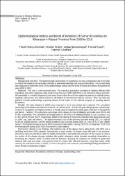 نتیجهگیری: نتایج مطالعه حاضر نشان داد که میزان بروز بیماری تا سال 1392 روند رو به افزایش و از سال 1393 به بعد روند رو به کاهش داشته است. با این وجود، همچنان تعداد موارد بیماری در جمعیت استان بالاست. لازم است تا با ارائه راهکارهای پیشگیرانه توسط مسئولین بهداشتی کشور و ارائهدهندگان خدمات بهداشتی- درمانی جهت کاهش بار بیماری گامهای اثر بخشی مانند آموزش همگانی برای پیشگیری از بیماری در هنگام تماس با دام ها، آموزش در زمینه اهمیت و چگونگی شستشوی دستها با آب و صابون، استفاده از دستکش هنگام لمس دام مبتلا، استفاده از ماسک هنگام پاک کردن محل نگهداری دام مبتلا و مداخلات درمانی و غربالگری در فصولی که انتقال بیماری زیادتر میشود برداشته شود.
