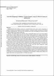 زمینه و هدف: ترومای نظامی دارای الگوی آسیب های چند بعدی است و مدیریت مجروحان ترومای جنگی و توسعه دانشهای مرتبط با آن برای حفظ و ارتقاء آمادگی حوزه طب نظامی ضروری است. این پژوهش با هدف بررسی روند و ترسیم نقشه علم ترومای نظامی بر اساس مقالات منتشر شده در پایگاه علمی و استنادی مدلاین انجام شد.