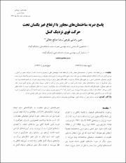 در این مقاله مدل ساده ای از ساختمانهای مجاور یک و دو طبقه تحت مولفه های افقی و عمودی حاصل از حرکات عمود بر گسل و موازی گسل با بزرگا و اختلاف فاز های مختلف مورد بررسی قرار گرفته است. جهت مدل کردن نیروی ضربه بین ساختمانها از مدل ویسکوالاستیک غیرخطی استفاده شده است. سیستم معادلات دیفرانسیل درگیر حاکم بر مدل به روش رانگ-گوتای مرتبه چهارم حل گردیده است. برای مدل های در نظر گرفته شده نتایج نشان می دهد: 1- با جاری شدن ستونها و ورود سیستم به ناحیه پلاستیک ضربه سبب افزایش چشمگیر جابجایی نسبی و نیز تغییرشکل ماندگار خصوصا در طبقه بالای محل برخورد میگردد. 2- حداکثر نیروی ضربه و نیز حداقل فاصله مورد نیاز جهت جلوگیری از ضربه ساختمانهای مجاور تحت پالس عمود بر گسل چندین برابر بزرگتر از مقادیر مربوطه تحت پالس موازی گسل می باشد. 3- رفتار غیرخطی مصالح و تغییرشکلهای پلاستیک حداکثر نیروی ضربه و حداقل فاصله لازم جهت جلوگیری از ضربه را بشکل چشمگیری نسبت به حالت خطی کاهش می دهد. همچنین در این حالت حداکثر نیروی ضربه در فاصله d>0 اتفاق می افتد در حالیکه حداکثر نیروی ضربه در حالت خطی در d=0 رخ میدهد. 4- اختلاف فاز حرکات ورودی پایه ها می تواند سبب افزایش 1.5 تا 2 برابری ماکزیمم نیروی ضربه و حداقل فاصله لازم جهت جلوگیری از ضربه گردد که در این بزرگنمایی مولفه افقی حرکت زمین نقش عمده را بازی نموده و مولفه های قائم و دورانی حرکت زمین نقش چندانی ندارند