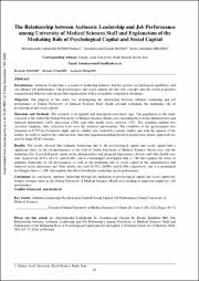 رهبری اصیل/ سرمایه روان شناختی/ سرمایه اجتماعی/ کارکرد شغلی/ دانشگاه علوم پزشکی استان گیلانتخصصي