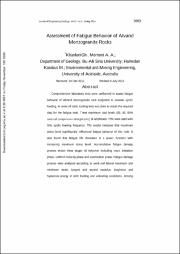 بهمنظور ارزیابی رفتار وابسته بهزمان (خستگی) مونزوگرانیتهای الوند، آزمونهای آزمایشگاهی لازم انجام گرفت. قبل از انجام این آزمایشها و بهمنظور بهدست آوردن اطلاعات لازم برای آزمایشهای خستگی، چندین آزمایش در حالت بارگذاری استاتیکی انجام شد. آزمایشهای خستگی در سه سطح بار ماکزیمم (85، 90 و 95% مقاومت تراکم تکمحوری) و در دامنۀ بارگذاری 70%، با فرکانس بارگذاری سیکلی 1 هرتز انجام شدند. نتایج بهدست آمده نشان داده است که تنش بیشینه تأثیر بارزی بر روی رفتار خستگی این سنگها دارد. همچنین مشخص شد که عمر خستگی بهصورت تابع توانی با افزایش سطح تنش بیشینه کاهش مییابد. روند آسیب خستگی انباشتی، رفتار سه مرحلهای شامل فاز شروع ترک، فاز رشد ترک با سرعت یکنواخت و فاز تسریع شوندهای را در گسترش ترک نشان میدهد. فرآیند آسیب خستگی با استفاده از پارامترهای کرنش بیشینه و کمینه محوری و جانبی، مدولهای مماسی و متقاطع، چقرمگی و انرژی وارفتگی در هر دو شرایط بارگذاری و باربرداری ارزیابی شد. از میان پارامترهای مذکور، کرنش جانبی و محوری و مدول متقاطع رفتار آسیب خستگی سه مرحلهای بهتری را نشان میدهند. همچنین قابل ذکر است که بیشتر ترکهای ایجاد شده در جهت موازی با محور بارگذاری است که در نتیجۀ آن، کرنش جانبی بیش از کرنش محوری تحت تأثیر قرار خواهد گرفت