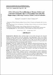 اثر شرطی سازی اولیه با تمرین استقامتی بر اختلالات حافظه و مرگ سلولی نورون های ناحیه CA3 هیپوکامپ به دنبال ایسکمی- ریپرفیوژن مغزی در موش صحرایی نر