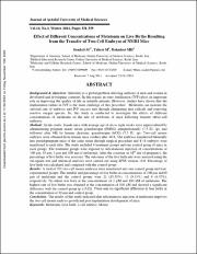 زمینه و هدف : ناباروری معضلی جهانی است و میلیون ها مرد و زن را در کشورهای توسعه یافته و در حال توسعه تحت تأثیر قرار داده است . در این راستا لقاح آزمایشگاهی ( In-vitro fertilization (IVF) ) نقش حیاتی بازی می کند. مطالعات انجام شده در لقاح آزمایشگاهی نشان داده است که فقدان لانه گزینی دلیل اصلی نتایج ناموفق لقاح آزمایشگاهی می باشد. ملاتونین می تواند میزان زنده ماندن جنین و میزان موفقیت لقاح آزمایشگاهی را افزایش دهد و این کار را با حذف رادیکال های آزاد و از بین بردن گونه های فعال اکسیژن ( oxygen reactive species (ROS) ) انجام می دهد. این مطالعه به منظور بررسی اثر غلظت های متفاوت ملاتونین برروی میزان نوزادان زنده متولد شده حاصل از انتقال جنین های دوسلولی موش سوری طراحی شد. روش کار: در این مطالعه، با تزریق 5/7 واحد هورمون گنادوتروپین سرم اسب باردار ( pregnant mares serum gonadotropin) (PMSG) ) و سپس همین میزان هورمون گنادوتروپین جفتی انسانی ( human chorionic gonadotropin) (hCG) ) 48 ساعت بعد بصورت داخل صفاقی، تخمک گذاری در موش های ماده ی 8-6 هفته ای نژاد NMRI تحریک شد . 48 ساعت بعد از آن جنین های دوسلولی از لوله های رحمی موش های ماده بدست آمد. جنین های دوسلولی به موش های سوری حامله ی کاذب از نژاد مشابه از طریق جراحی و به صورت دوطرفه انتقال داده شدند. به هر لوله 14-8 جنین انتقال داده شد. مطالعه شامل 4 گروه آزمایش و یک گروه کنترل (6 موش در هر گروه ) می باشد. گروه های آزمایش با تزریق زیرجلدی ملاتونین با غلظت های 100 میکرومولار، 10 میکرومولار، 1 میکرومولار و 100 نانومولار تیمار شدند. بعد از سزارین در روز 18 بارداری، درصد تولدهای زنده مشخص شدند. نتایج با استفاده از آزمون آماری مجذور کای ( chi-square test ) ارزیابی شد و تجزیه و تحلیل آماری با استفاده از نرم افزار ver 16/0 SPSS انجام گرفت . درصد تولدهای زنده محاسبه و با گروه کنترل مقایسه شد . یافته ها : 701 جنین دوسلولی به یک گروه کنترل و 4 گروه آزمایش موش سوری انتقال داده شدند. نتایج نشان داد که تعداد و درصد نوزادان متولد شده در غلظت های 100 میکرومولار، 10 میکرومولار ملاتونین و گروه کنترل به ترتیب 21 (55/15%)، 13 (15/9%) و 9 (47/6%) بود و در غلظت های 1 میکرومولار و 100 نانومولار، هیچ نوزاد زنده ای متولد نشد. بیشترین میزان تولد زنده در غلظت 100 میکرومولار بدست آمد و تفاوت معنی داری با گروه کنترل نشان داد ( p≤0.0001 ) . میزان تولدهای زنده در غلظت 10 میکرومولار و گروه کنترل تفاوت معناداری را نشان ندادند. نتیجه گیری: نتایج این مطالعه نشان می دهد که تزریق زیر جلدی ملاتونین روند رشد جنین دو سلولی موش و تکامل پس از جایگزینی موش سوری را بهبود می بخشد.