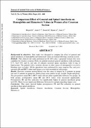 مقایسه اثر روش بیهوشی عمومی و بیحسی داخل نخاعی بر تغییرات هموگلوبین و هماتوکریت در زنان پس از سزارین
