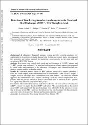 نتیجه گیری: نتایج مطالعه کنونی نشان داد که میزان آلودگی افراد HIV+ به انگل آکانتامبا بیش از افراد HIV- است. همچنین با توجه به این که در گروه شاهد (افراد HIV-) فقط نمونه ترشحات بینی، آلوده به انگل مذکور بود به نظر میرسد در گروه مورد (افراد HIV+) آلودگی ترشحات دهان به این انگل در پی ورود کیستهای آن به بینی و انتقال به دهان فرد انجام می شود.