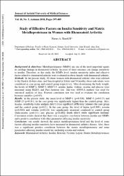 مطالعه عوامل موثر بر حساسیت به انسولین و ماتریکس متالوپروتئینازها در زنان مبتلا به آرتریت روماتوئید