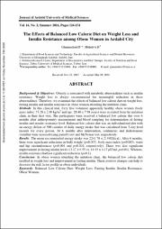 تاثیر رژیم غذایی کم کالری متعادل روی کاهش وزن و مقاومت انسولینی زنان چاق در شهر اردبیل