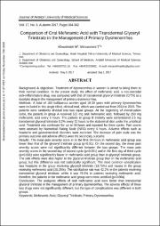 زمینه و هدف: هدف از درمان دیسمنوره بازگشت زنان به وضعیت عادی است. در این مطالعه داروی ضد التهابی غیراستروئیدی کپسول مفنامیک اسید با پمادگلیسریل تری نیترات بعنوان توکولیتیک در درمان درد قاعدگی اولیه مقایسه شده است.