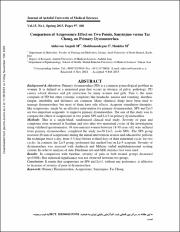 نتیجه گیری: با توجه به پژوهش حاضر بنظر می رسد اعمال طب فشاری در هر دو نقطه تای چانگ و سانینجیائو، به یک اندازه، سبب بهبود دیسمنوره اولیه خواهد شد.
