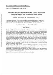 نتیجه گیری: نتایج این مطالعه نشان داد عصاره هیدروالکلی TB میتواند بر بهبود پارامترهای اسپرم و افزایش میزان هورمون تستوسترون موثر باشد و میتوان از آن به عنوان محرک جنسی و در ناباروری (جنس مذکر) استفاده نمود.
