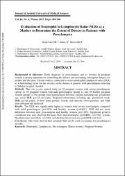 بررسی نسبت نوتروفیل به لنفوسیت (NLR) به عنوان یک مارکر تعیین کننده شدت بیماری در بیماران مبتلا به پره اکلامپسی