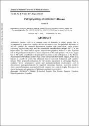 بیماری آلزایمر یک بیماری مخرب مغزی است که با اختلالات پیشرونده شناختی و کاهش حافظه همراه است. این بیماری دارای دو خصوصیت نوروپاتولوژیکی است که یکی تجمع پلاک در قسمت خارج سلولی نورونها بوده و پپتیدهای بتاآمیلوئید جزء اصلی این پلاکها را تشکیل میدهند و دیگری تشکیل کلافه های نوروفیبریلاری در داخل نورونها است که در اثر هیپرفسفریلاسیون پروتئینهای تاو ایجاد میشوند. پپتیدهای بتا آمیلوئیدی (Aβ) از شکسته شدن پروتئین پیش ساز آمیلوئید تولید میشوند. اختلالات در عملکرد سیناپسها یکی از مهمترین خصوصیت بیماری آلزایمر است که منجر به اختلالات شناختی در این بیماران میگردد. آمیلوئید بتا یک سم قوی برای میتوکندریها محسوب میشود که باعث ایجاد اختلالات عملکردی در میتوکندریها و در نتیجه آزادشدن رادیکالهای آزاد و نهایتاً آسیب نورونها میشود. اختلال در سیستم کولینرژیک، آسیبهای التهابی، اختلال در میزان کلسیم داخل سلولی، تحریک بیش از حد گیرندههای گلوتامینرژیکی، تشکیل کانالهای کاتیونی غیروابسته به ولتاژ در غشای لیپیدی توسط Aβ، اختلال در انتقال آکسونی، آسیب عروق مغزی و اختلالات متابولیسم اسیدهای چرب و کلسترول از خصوصیات دیگر پاتوفیزیولوژیکی هستند که در بیماری آلزایمر دیده میشوند.