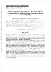 بررسی میزان فراوانی DNA ویروسهای BKV و JCV در گیرندگان پیوند کلیه در استان گیلان بوسیلهReal time PCR 95-1389
