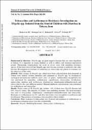 بررسی مقاومت به تتراسایکلین و آزیترومایسین درگونههای شیگلا جداشده از مدفوع کودکان مبتلا به اسهال در تهران، ایران
