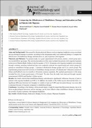 مقایسه اثر بخشی درمان ذهنآگاهی و ریلکسیشن بر شدت درد در بیماران مبتلا به سر درد های میگرنی