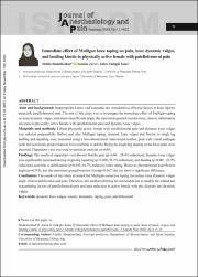 نتیجه گیری: نتایج مطالعه حاضر نشان داد که انجام تیپینگ اصلاحی مولیگان میتواند زاویه والگوس داینامیک زانو و زمان رسیدن به پایداری و درد را کاهش دهد. لذا استفاده از روش تیپینگ مولیگان به دلیل تعدیل عوامل مرتبط و تشدید کننده درد پتلوفمورال و کاهش درد در زنان فعال دارای این اختلال و والگوس داینامیک پیشنهاد میشود.