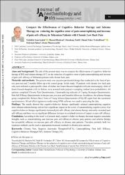 یافتهها: نتایج نشان داد درمان شناختی- رفتاری باعث کاهش معنیدار خطای شناختی فاجعهآفرینی شد. در حالیکه طرحوارهدرمانی تاثیر معنیداری بر نمرات خطای شناختی فاجعهآفرینی نداشت. همچنین درمان شناختی- رفتاری باعث افزایش معنیدار و طرحوارهدرمانی نیز باعث افزایش قابل توجه خودکارآمدی درد شد به طوری که اختلاف معنیداری بین این دو روش از نظر تاثیر بر خودکارآمدی درد وجود نداشت.