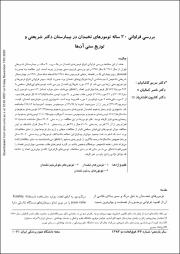 هدف از این مطالعه بررسی فراوانی انواع تومورهای تخمدان در یک دوره 20 ساله در بیمارستان شریعتی تهران از سال 1355 تا سال 1374 و نیز بررسی توزیع سنی بیماران بوده است. این مطالعه به صورت گذشتهنگر روی بیمارانی که در فاصله زمانی فروردین ماه 1355 تا اسفند ماه سال 1374 در بیمارستان شریعتی تشخیص آسیبشناسی آنها نئوپلازیهای تخمدان بود، صورت گرفت سپس فراوانی انواع تومورها و نیز توزیع سنی آنها بررسی شد. از 493 مورد نئوپلازی تخمدان بررسی شده، تومورهای اپیتلیالی سطحی با 283 مورد(4/57% کل تومورها) بیشترین تعداد را تشکیل میدادند. سایر موارد شامل 152 مورد تومور ژرم سل(83/30%) و 31 مورد(28/6%) تومور طناب جنسی و 24 مورد تومور متاستاتیک(86/4% کل تومورها) بود. از 3 مورد باقیمانده 2 مورد لوتئوم و 1 مورد کندروما بوده است. شایعترین تومور خوشخیم تخمدان، کیست درمویید(53/39%) و پس از آن سروسیت آدنوما با 94/29% و موسینوس سیست آدنوما با 82/14% مشاهده شد. شایعترین تومورهای بدخیم تخمدان تومورهای سروزی بدخیم بودند(69/53% تومورهای بدخیم) و متاستازها(1/16% تومورهای بدخیم) و موسینوس سیست آدنوکارسینوما(09/14% تومورهای بدخیم) در ردههای بعدی قرار گرفته بودند. اغلب تومورها در این مطالعه، در رده سنی 30-21 سال مشاهده شدند(111 نفر) و پس از آن 99 نفر در رده سنی 60-51 سال و 96 نفر در رده سنی 40-31 سال قرار داشتند. در این مطالعه، میزان تومورهای اپیتلیالی سطحی کمتر از مطالعات جهانی و ژرم سل توموها بیش از سایر مطالعات بوده است که شاید به علت جمعیت جوانتر بیماران این مطالعه باشد(اغلب تومورها در رده سنی 30-21 سال بودند) همچنین متاستازها درصد بالاتری از تومورهای بدخیم را تشکیل میدادند(نسبت به سایر مطالعات) که میتواند نشان دهنده تشخیص دیرهنگام بدخیمی باشد. در گروه تومورهای طناب جنسی، بیشترین تعداد را فیبروتکوما تشکیل میداد در حالی که در سایر مطالعات، تومورهای گرانولوزا تکاسل بیشترین تعداد را داشتند که عوامل نژادی را نیز باید در نظر گرفت.