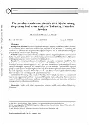 بررسی میزان شیوع و علل صدمات ناشی از اجسام نوک تیز در کارکنان شبکه بهداشت و درمان شهرستان بهار