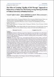بررسی تاثیر آموزش رویکرد کیفیت زندگی درمانی بر ابعاد بهزیستی ذهنی دانشجویان پرستاری دانشگاه علوم پزشکی تهران