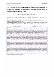 اثر بخشی برنامه آموزشی مراقبت خانواده محور بر اضطراب مادران نوزاد نارس بستری در بخش مراقبتهای ویژه نوزادان