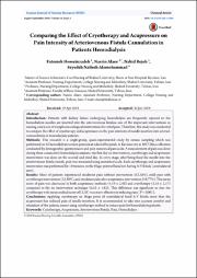 مقایسه تأثیر کرایوتراپی و طب فشاری بر شدت درد ورود سوزن به عروق شریانی – وریدی بیماران همودیالیزی