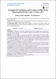 بررسی رضایت از زندگی و عوامل مرتبط با آن در سالمندان مراجعه کننده به مرکز بهداشت غرب تهران در سال 96