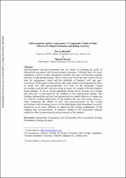خود آزمایی و همتا آزمایی دو روش تحقق اهداف سنجش آموزشی و آموزش آموزنده محورbrهستند.اگرچه بحثهای موافق بسیاری در مورد مزایای این دو روش وجود دارد، اما خود آزمایی و همتاbrآزمایی آنقدر که باید فعالیتهای متداولی در محیطهای آموزشی نیستند. دلیل اصلی این امر عدم اعتمادbrمعلمان به پایایی و ارزشهای آموزشی این دو روش است . با توجه به این نکات، هدف از این تحقیقbrبررسی تاثیر خود آزمایی و همتا آزمایی بر عملکرد نوشتار و دقت سنجش در خود آزمایی و همتا آزماییbrگروهی از دانشجویان ایرانی رشته های زبان انگلیسی بود. بدین منظور، یازده پاراگراف طی یازده جلسهbrتوسط دو گروه آزمایش مورد خودآزمایی و همتا آزمایی قرار گرفت. نتایج حاکی از آن بود کهbrخودآزمایی و همتا آزمایی نه تنها تاثیر چشمگیر مثبتی بر عملکرد نوشتار دانشجویان دارند، بلکه دقتbrسنجش در خود آزمایی و همتا آزمایی را به طور قابل ملاحظه ای افزایش می دهند. بعد از مقایسه تاثیرbrخود آزمایی و همتاآزمایی با یکدیگر بر عملکرد نوشتار و دقت سنجش دانشجویان، مشخص شد که همتاbrآزمایی تاثیر چشمگیرتری نسبت به خودآزمایی بر عملکرد نوشتار دارد. همچنین هیچ یک از دو روشbrخودآزمایی و همتا آزمایی نسبت به یکدیگر تاثیر بیشتری بر دقت سنجش نداشتند.