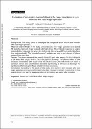 نتایج: مقادیر رویِ سرم قبل از عمل 5/14±87/89 میکروگرم بر دسی لیتر، بیستوچهار ساعت پس از عمل 86/15±95/74 میکروگرم بر دسیلیتر و هنگام ترخیص 53/14±87/93 میکروگرم بر دسی لیتر بود. مقادیر رویِ سرم بلافاصله بعد از عمل کاهش داشت که این کاهش تا بیستوچهار ساعت اوّل عمل ادامه یافته است. مقادیر رویِ سرم بیستوچهار ساعت پس از عمل نسبت به مقادیر روی هنگام ترخیص کاهش معنیداری داشت. این تغییرات در دو جنس پسر و دختر متفاوت نبود.