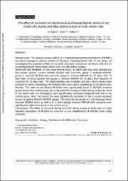 نتایج: میانگین سطح گلبولهای قرمز در گروه های دریافت کننده MDMAنسبت به گروه کنترل کاهش معنی داری داشت. هنگام استفاده از کورکومین همراه با MDMA و بعد از مصرف آن میانگین سطح گلبول های قرمز و هموگلوبین نسبت به گروه کنترل کاهش معنی داری داشت. همچنین، کاهش تعداد گلبول های قرمز در گروه های دریافت کننده کورکومین نسبت به گروههای MDMA نیز معنیدار بود. سطح بیلی روبین تام در همه گروه های مطالعه نسبت به گروه کنترل افزایش معنی دار داشت.