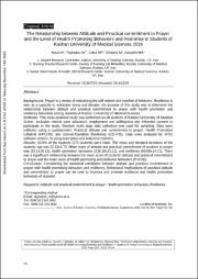 بررسی ارتباط نگرش و التزام عملی به نماز با رفتارهای ارتقادهنده سلامت و تابآوری در دانشجویان دانشگاه علوم پزشکی کاشان، در سال 1397