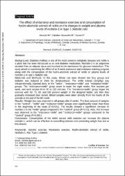 مواد و روش ها: در این پژوهش تجربی موشهای نژاد ویستار در 4 گروه قرار گرفته و با تزریق استروپتوزوسین دیابت در آنها القاء شد. به گروه های «گزنه»، «استقامتی+گزنه» و «مقاومتی+گزنه» روزانه mg/kg 1 عصاره گزنه به صورت درون صفاقی تزریق شد. گروه «استقامتی+گزنه» به مدت 8 هفته، 5 جلسه در هفته و هر جلسه از 60 تا 120 دقیقه در آب شنا کردند. گروه «مقاومتی+گزنه» با حمل وزنههای 50، 75، 90 و 100 درصد وزن خود روی نردبان طراحیشده، تمرین را شروع کرده و سپس بهتدریج افزایش رکورد داشتند. در پایان 8 هفته از قلب حیوانات بهصورت مستقیم خون گرفته شد.