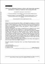 یافته های کلینیکی و رادیوگرافی آسپیراسیون جسم خارجی در کودکان بستری در بیمارستان هفده شهریور رشت طی سال های 1375 تا 1387